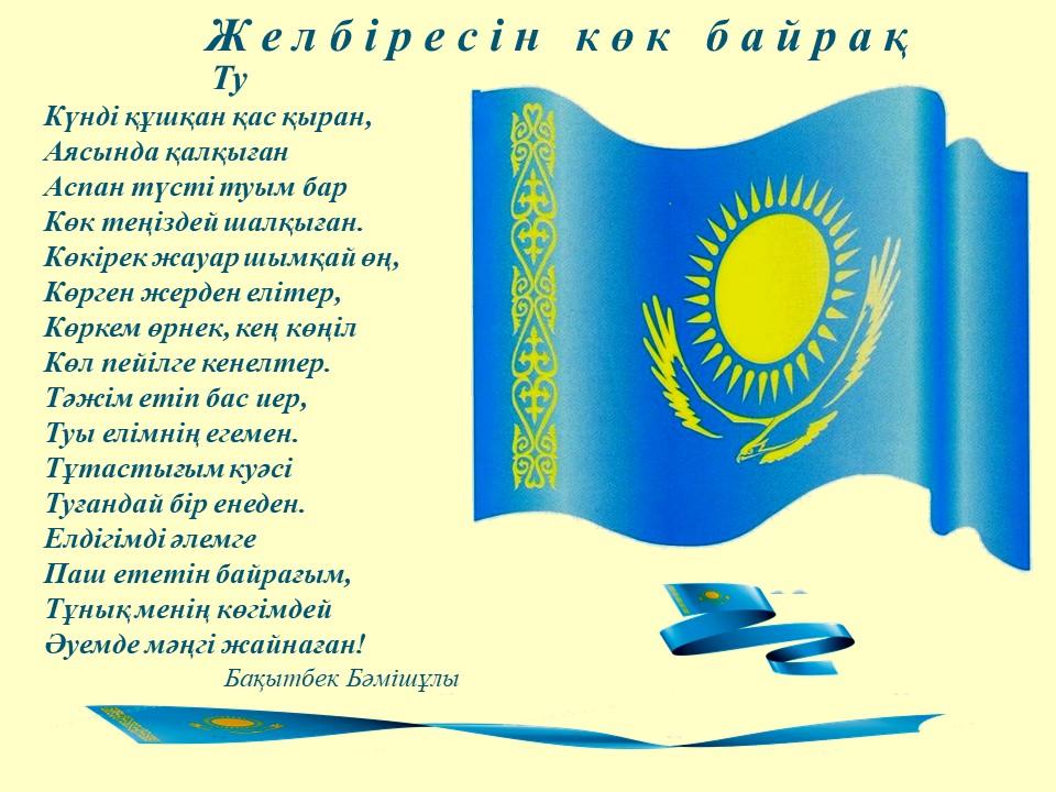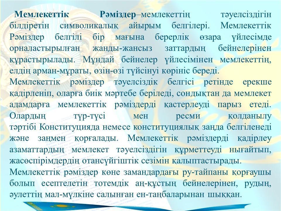 "Мемлекеттік рәмізер-кемел келешек кепілі" тақырыбындағы презентация » Жетісу облысы Кербұлақ ауданы Қарашоқы орта мектебі