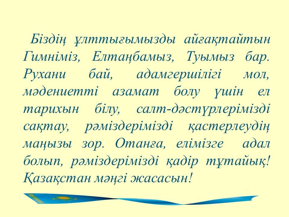 » » » "Мемлекеттік рәмізер-кемел келешек кепілі" тақырыбындағы презентация
