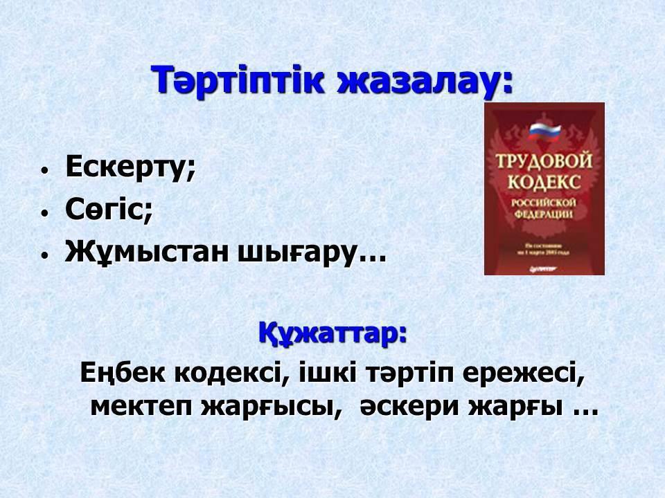Құқықтық сауаттылық » Жетісу облысы Кербұлақ ауданы Қарашоқы орта мектебі