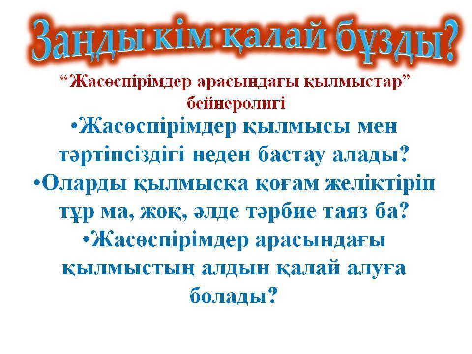 Құқық бұзушылықтың алдын алу » Жетісу облысы Кербұлақ ауданы Қарашоқы орта мектебі