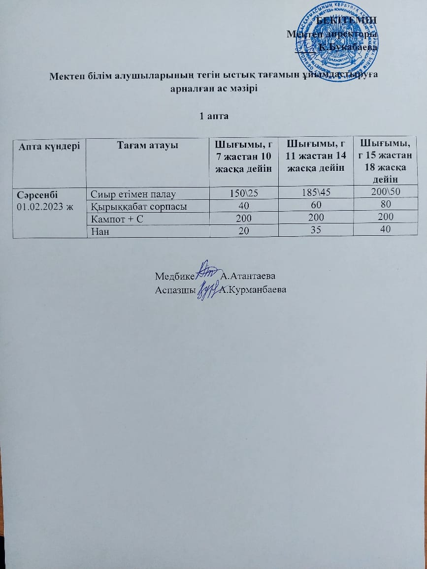 Күнделікті ас мәзірі » Жетісу облысы Кербұлақ ауданы Қарашоқы орта мектебі
