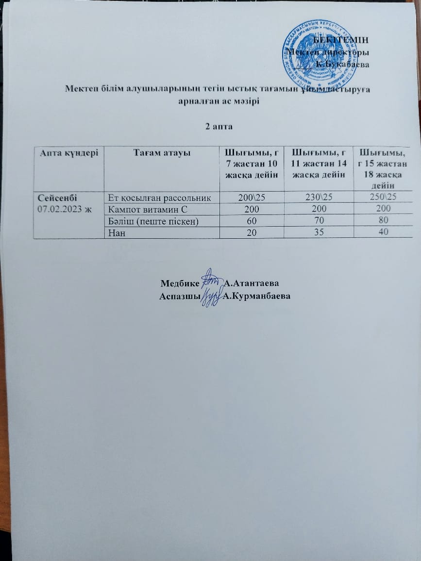 Күнделікті ас мәзірі » Жетісу облысы Кербұлақ ауданы Қарашоқы орта мектебі