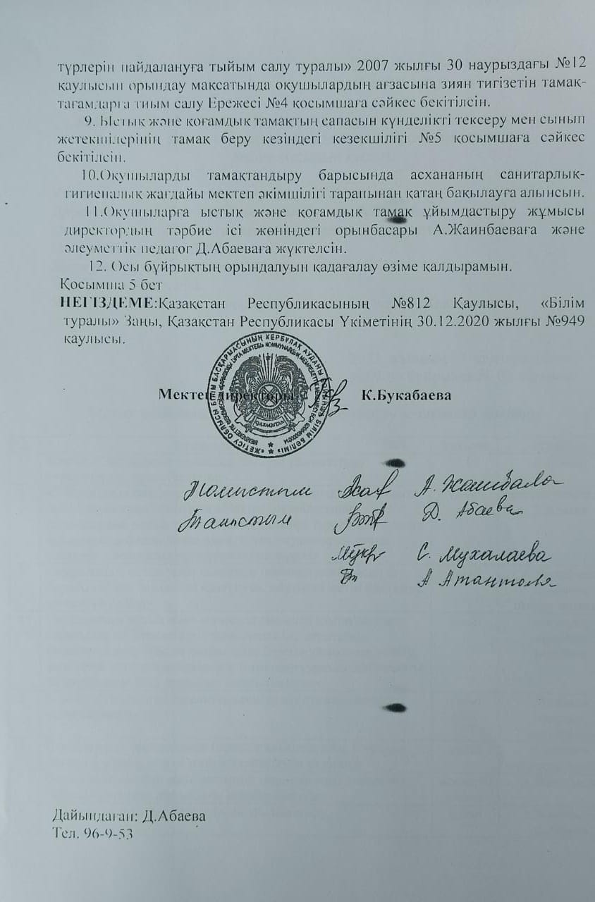 Тегін ыстық тамақты ұйымдастыру туралы бұйрық. 2023 жыл қаңтар айы. » Жетісу облысы Кербұлақ ауданы Қарашоқы орта мектебі