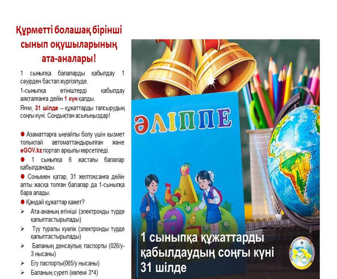 1 сыныпқа қабылдау