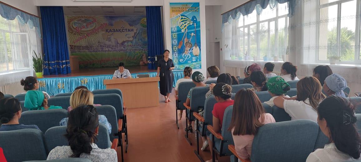 Ауылдағы футбол стадионына кешкі сағат 21-00-ден кейін тек ата-анасымен бірге баруды ескертті. Себебі түнгі мезгілде ол жерде ауыл жастары ойнайды. Сондықтан алаңның бос болмағандығынан баланың уақыты босқа өтетіндігі еске салыңды. Кешкі мезгілде 21-00-ден кейін оқушы балаларға көшеде, демалыс орындарында, сауықтыру орындарында, дүкенде, кинотеатрларда жүруге болмайды. Кешкі мезгілде тек ата-аналарымен ғана жүруге рұқсат етіледі. Жазғы демалыс аяқталып келуде, балаланы сабаққа дайындап, мектепке бейімдеу үшін, сырта (ата-апасының, туысқандарында, әке-шешелерінің жанында)жүрген балаларды ауылға қайтару керектігін айтты. Өткен аптада «Түнгі қала» акциясы аясында рейдтік шаралар жүргізілген, оқу жылының басталуына орай бұндай шаралардың саны көбейтіледі. Жұмысқа тартылған білім алушылар анықталмады, дегенмен де түнгі жұмыс жасайтын сауықтыру орындарында мектеп оқушыларының жұмыс жасамағандығы абзал дегенді қосты. Жаз мезгілінде де жол ережелерінің сақталуы тиіс екенін ата-ана үнемі балаға ескертіп отырған дұрыс. Мал бағатын фермалардағы ата-аналардың балалары ауылға келіп, мектепке дайындықты бастау керектігі айттылды. Әсіресе толық емес отбасы балалары, бала жаздай әкеде немесе шешесінде болады, сондықтан да баланың жағдайын ескере отырып, оларды ертерек ауылға алып келіп, мектепке дайындығын бастай беру керек. Себебі көп ата-аналар тамыздың 30-31-не дейін жандарында ұстап, тақалғанда ауылға әкеледі. Ал, бала болса, бірден бейімделе алмайды. Жалпы балалар мектепке дайын ба? Кімде қандай өзекті мәселе болып тұр, осындай сұрақтармен жеке келіп жолығуға немесе сенім телефонына (87009529737) хабарласуға болтындығын ескертті.
