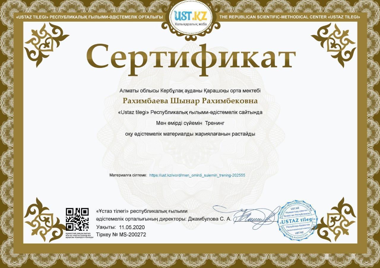Ұстаздарымыздың жетістіктері! » Жетісу облысы Кербулакский район Қарашоқы орта мектебі